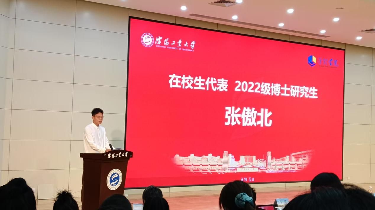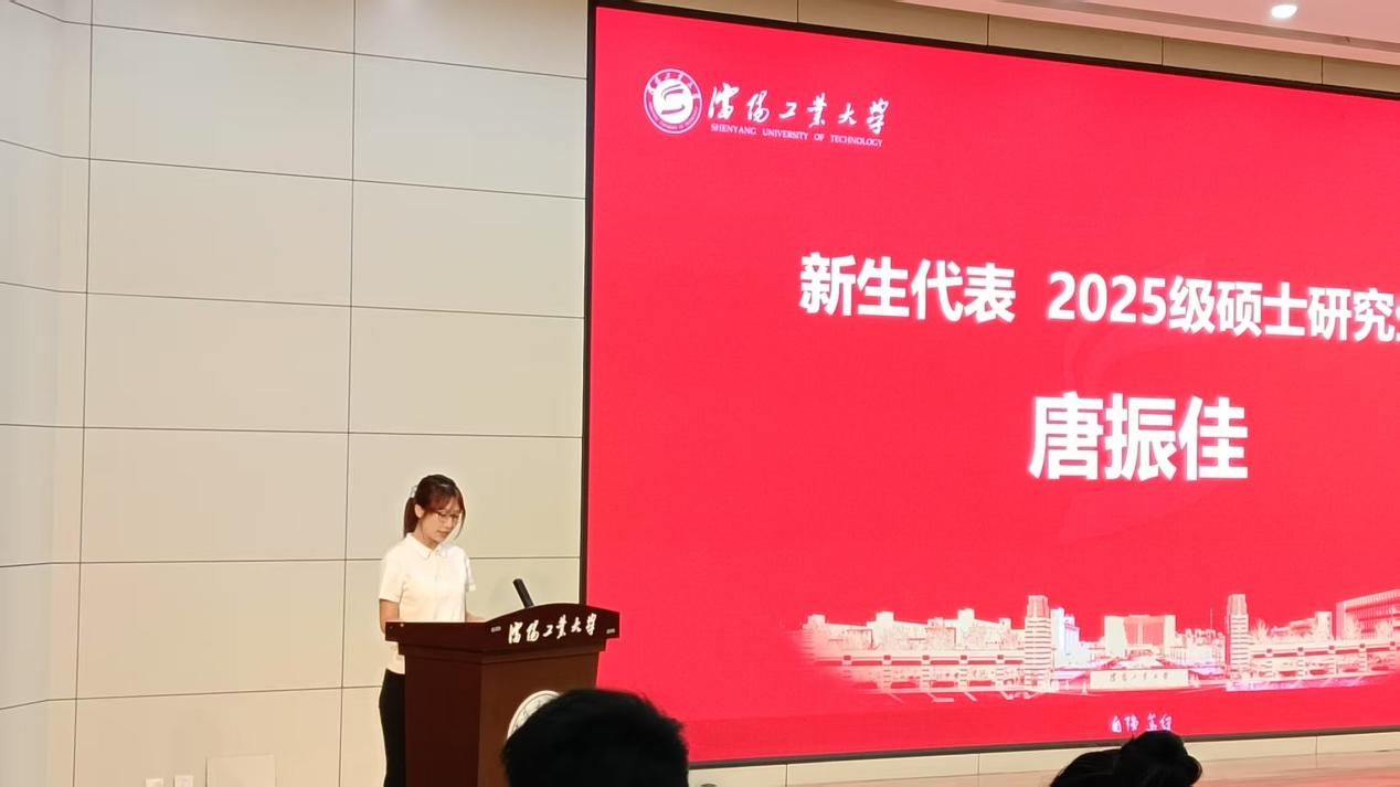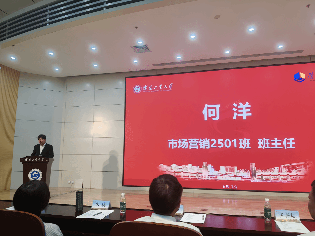 市场营销2301班何洋作为25级本科生班主任代表发言,他首先向开启大学旅途的新生们表示热烈的祝贺,接着以自身经验为引,分别从“思想关”“生活关”“发展关”三方面为大家提出建议,并呼吁新生们传承工大精神,在奋斗中书写青春篇章!