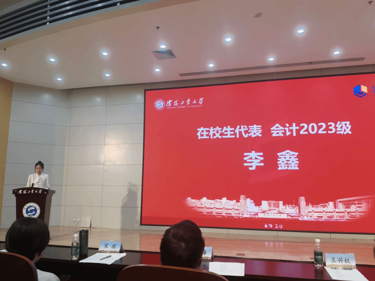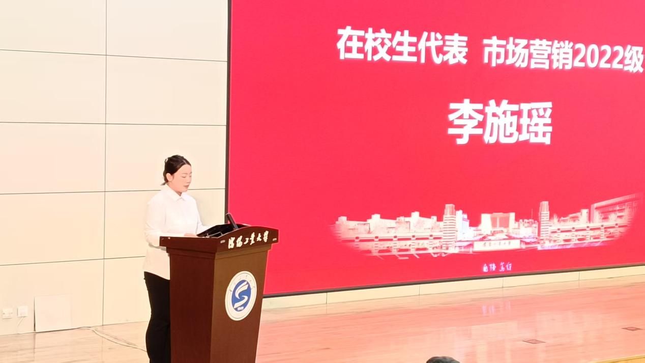 硕博连读研究生刘丽君、硕士研究生唐振佳、本科生姜子涵分别作为新生代表进行发言。他们表示,在未来的学习时光中会全力培养独立的创新思维,始终保持求知的热情,在挑战中超越自我。同时,她们也殷切期望全体新生能在管理学院收获扎实本领、结交真挚挚友,勇敢追逐梦想,不负这大好青春时光。
