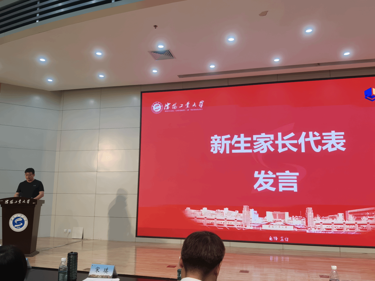 范奕辰同学的父亲作为家长代表进行发言,他首先对学院和老师表达了崇高敬意与诚挚感谢,感谢他们为孩子们的成长铺就道路。看着孩子从稚嫩走向意气风发的大学生模样,家长满是骄傲。家长鼓励孩子们在以自强为信念的学府里,直面挑战,在求知中塑造坚韧品格,脚踏实地做学问、干实事。同时,希望孩子们珍惜时光,探寻热爱,提升品德与担当,他那字字句句间自然流淌出的殷切期盼与细腻关爱,让我们真切且深刻地领略到家校共育所蕴含的磅礴力量,那是一种能托举孩子奔赴美好未来的强大合力。