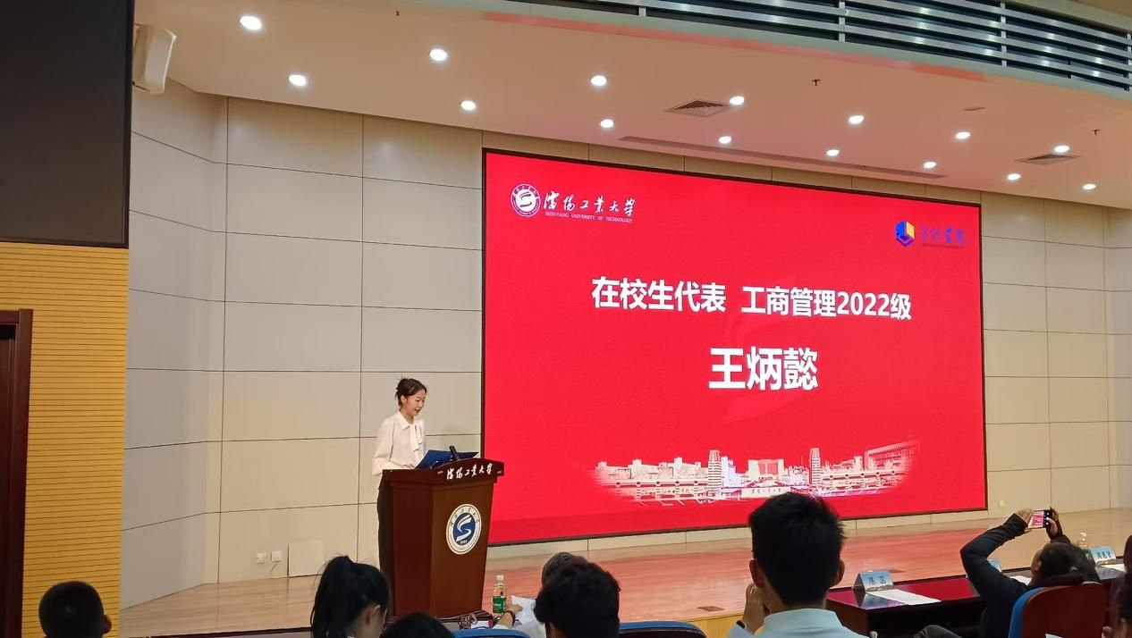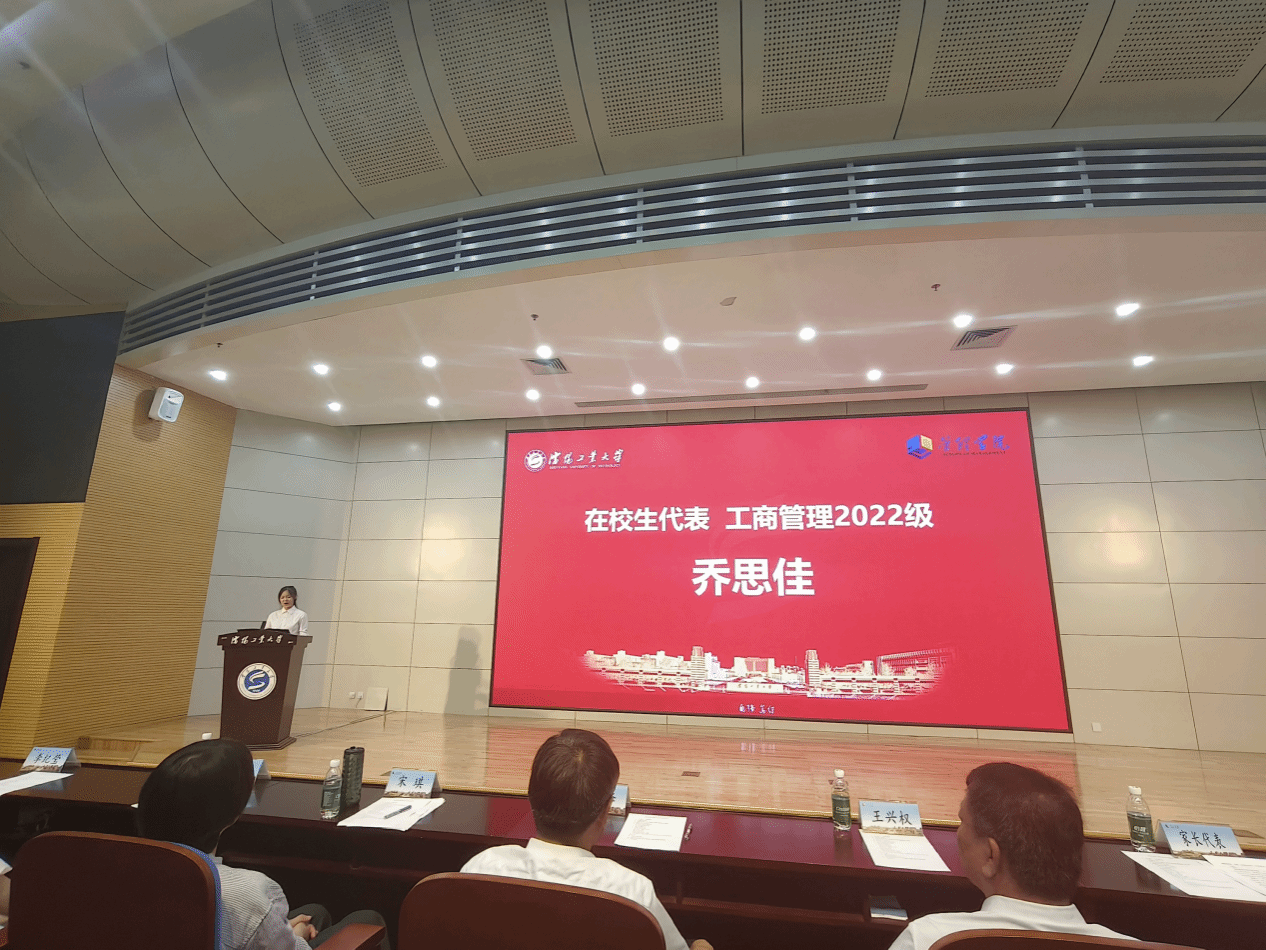 本科生代表乔思佳、王炳懿、李施瑶、硕士研究生代表李鑫、博士研究生代表张傲北依次表达了对学院老师的感激之情,同时分别从学业规划、科创、综合素质提升、投身实践、直面挑战五方面为初入大学校园的同学们提供了诸多宝贵的建议与意见,鼓励大家勇敢探索,书写属于新一代管理学院的精彩篇章!