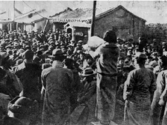 1935年12月9日,清华大学社会系大四女生陆璀在西直门外,向学生和附近群众讲话。