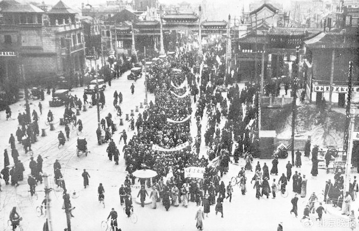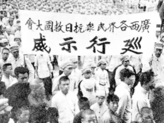 1931年,“九一八”事变后,北平、上海等地学生在南京国民党政府门前示威,抗议蒋介石的不抵抗政策,要求出兵抗日。