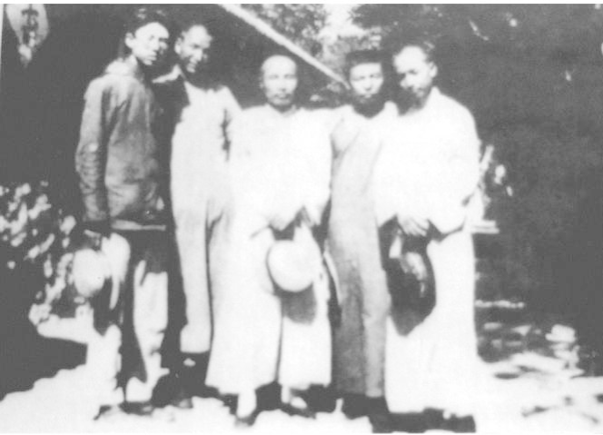 抗战胜利后,东北大学(三台)全体教职员工在校门前合影留念。