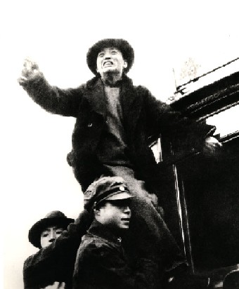 “一二·九”运动领导人之一黄敬登上电车发表演说。