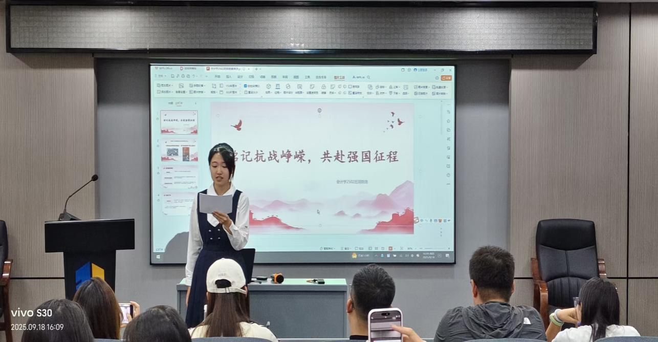 一段烽火连天的岁月,一曲气壮山河的壮歌,在深情的演讲中化为永恒的民族记忆。为深化爱国主义教育,强化民族历史记忆,引导广大青年正确认识历史、珍爱和平,2025年9月18日,管理学院于文科楼420室举办“铭记抗战魂,共筑强国梦”2025级新生主题演讲比赛。参赛选手与评委老师齐聚一堂,共同回望那段山河破碎的岁月,缅怀用鲜血与生命铸就的辉煌历史。