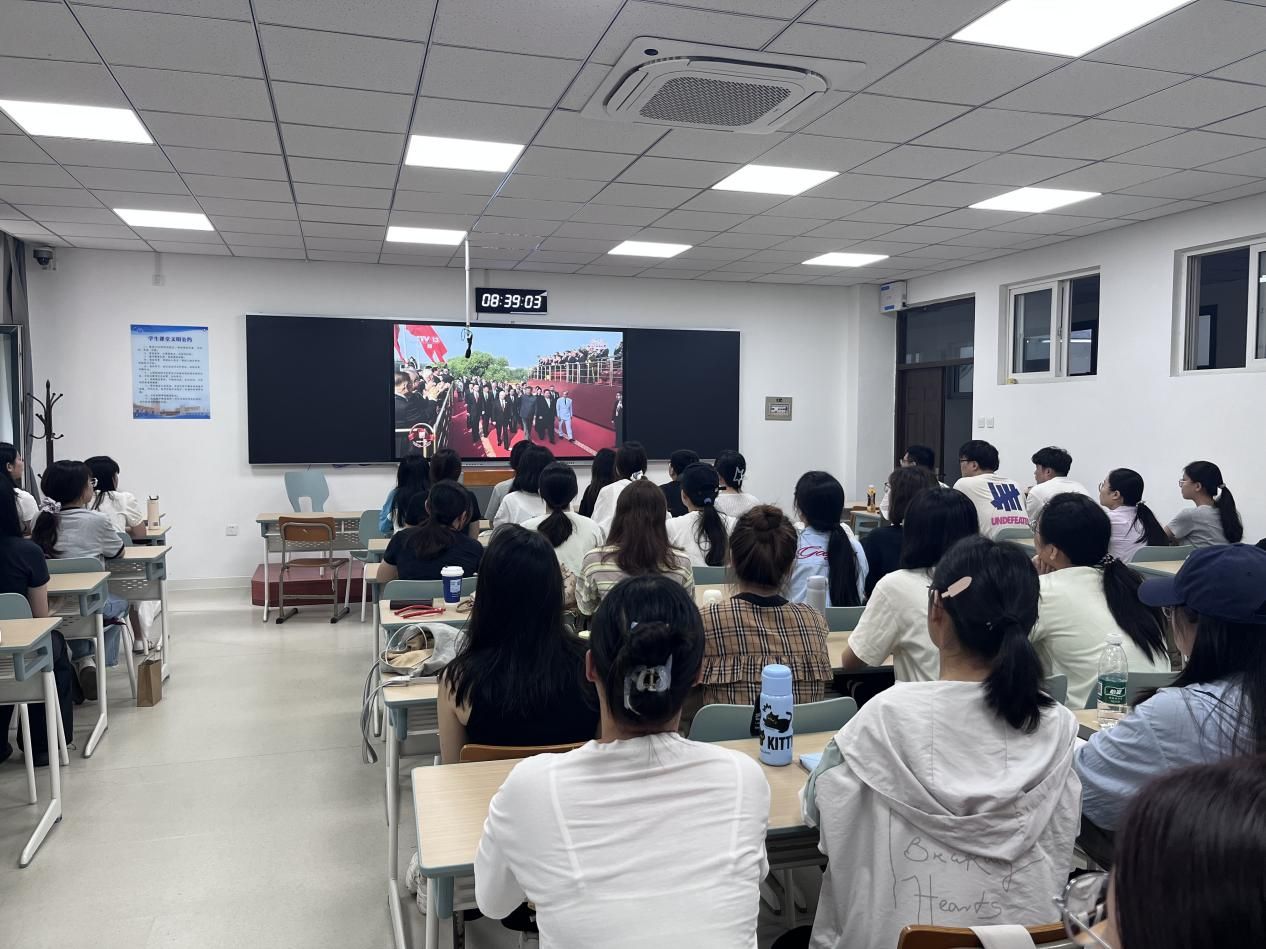 上午9时,纪念中国人民抗日战争暨世界反法西斯战争胜利80周年大会隆重举行。沈阳工业大学管理学院组织全体师生通过网络、电视等多种形式,共同收看了大会的直播实况。